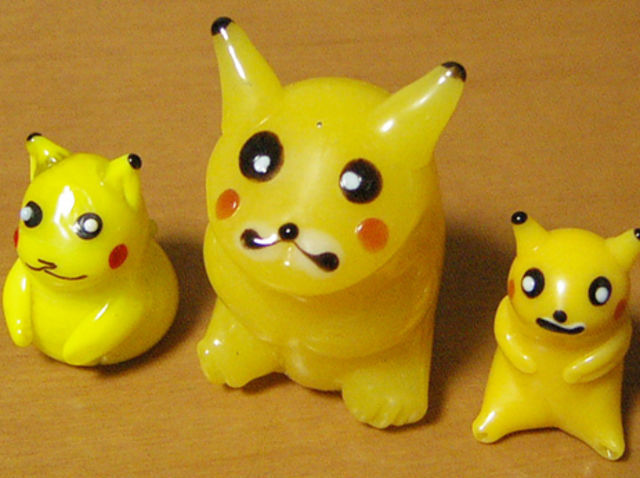Pikachu vesgo, pikachu triste e pikachu com vergonha alheia. Olhe fixamente para o Pikachu da direita. Ele tá com uma carinha de “cara, me tira daqui, para de tirar foto de mim. Eu não gosto de foto.”